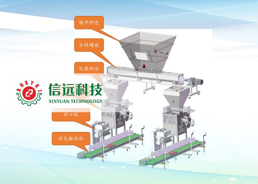 安徽信遠包裝科技小編接下來為大家講解全自動粉劑水溶肥生產(chǎn)設(shè)備中計量包裝系統(tǒng)部分